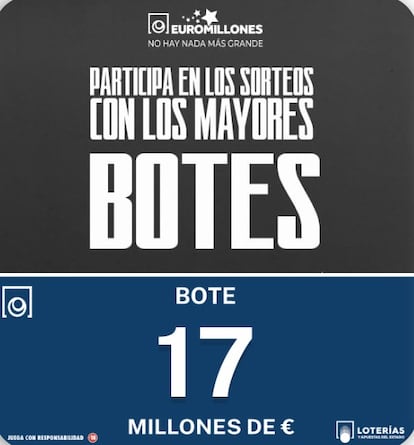 El sorteo de Euromillones de este viernes tiene un bote de 17 millones de euros.
