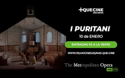 ¡Apunta! El sábado 10 de enero la temporada del Metropolitan Opera House comienza el año 2026 en Cine Yelmo con la proyección en directo desde Nueva York de I Puritani, la última ópera compuesta por el maestro italiano Vincenzo Bellini. Por ser lector de EL PAÍS, participa y consigue una entrada doble para disfrutar de esta obra desde la gran pantalla de tu ciudad a través de +Que Cine, la ventana de contenidos alternativos de Cine Yelmo ¡No te lo pierdas!
