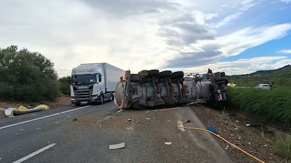 El vehículo pesante, que transportaba aceite mineral, volcó el sábado al mediodía tras colisionar con un turismo y quedó atravesado en la mediana