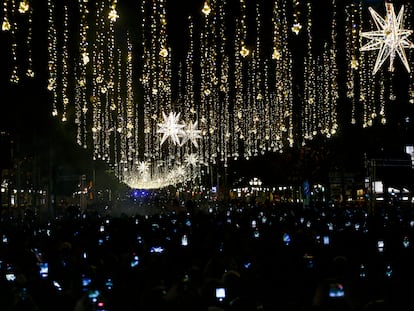 Las luces se han encendido el jueves en el Paseo de Gràcia, dando inicio a una cargada agenda navideña