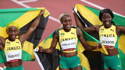 La vencedora bate el récord de los campeonatos y se convierte en la primera persona en ganar cinco Mundiales, mientras que sus compatriotas Sherley Jackson y Elaine Thompson-Herah obtienen plata y bronce