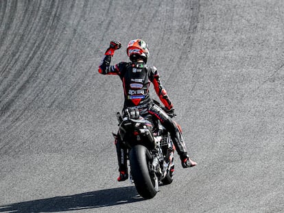 El piloto del equipo Gresini celebra la confirmación de su mejor temporada en MotoGP con una victoria aplastante este domingo