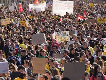 La manifestación de la capital catalana reúne 25.000 docentes, que reclaman mejoras salariales, reducción de burocracia y más personal para la escuela inclusiva