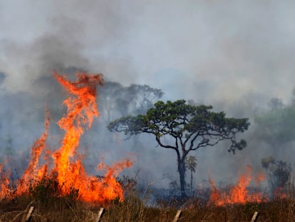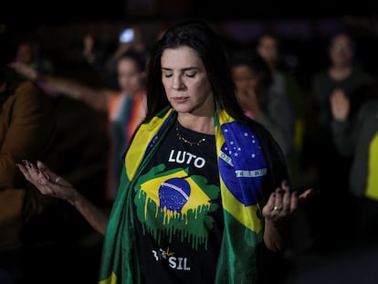 Un grupo de bolsonaristas reza por el presidente cerca de su casa, en Brasilia, en la cuenta atrás para que el Tribunal Supremo dicte sentencia en el caso por golpismo