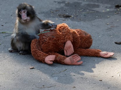 El mono japonés ha recibido gran atención en las redes por buscar consuelo en un peluche tras el rechazo materno