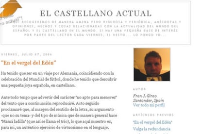 En el blog, www.castellanoactual.blogspot.com, de Fran J. Girao, periodista cántabro de 26 años que escribe un artículo cada semana en este espacio sobre anécdotas, opiniones, hechos y cosas relacionadas con el español actual. Pero Girao no ve sólo la paja en el ojo ajeno, ya que el uso del lenguaje por parte de muchos periodistas también es comentado; aunque en este punto él es firme al decir que "no pretendo ser una especie de azote de periodistas, no soy de ese tipo de gente, sólo pretendo llamar la atención sobre el mal uso que se hace a veces de nuestra lengua, de lo abandonada que la tenemos y sobre todo intentar que se tome conciencia de lo bonita que es"