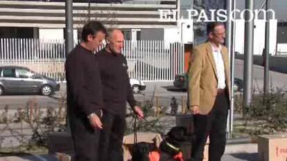 Dos perras labrador, entrenados para detectar cargamentos ilegales de CD y DVD, han demostrado sus habilidades en España