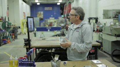 La tableta es como la cabeza de un robot que se mueve con una rueda, unida al iPad por un cuello de aluminio que puede regularse en altura para situarse al mismo nivel de las personas, según se encuentren sentadas o de pie. El aparato pesa ocho kilos y, de momento, se ha pensado para grandes espacios, como museos, hospitales, universidades o almacenes comerciales.