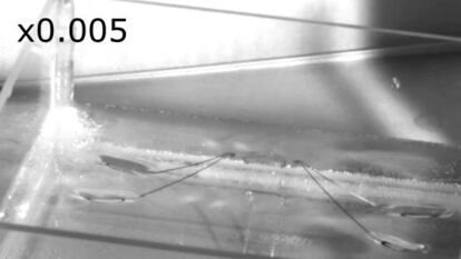 El resorte que impulsa la última versión del insecto robótico también está inspirado en su homónimo animal, y es capaz de elevar los 68 miligramos del invento a 142 milímetros de altura sobre el agua. Al liberar la fuerza de forma gradual, la tensión superficial no solo mantiene a flote al robot, sino que se suma al impulso, de ahí que salte más alto desde el agua que desde tierra. Y lo que es más, este resorte permite un amerizaje seguro al amortiguar paulatinamente el descenso sobre la capa superior del agua. Tal y como se aprecia en el vídeo que acompaña la publicación sobre el trabajo, en el momento del despegue, el robot apenas altera la superficie del agua. E incluso cuando las patas ejercen toda su fuerza solo se levantan unas pequeñas gotas.