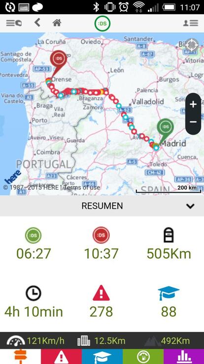 Estos algoritmos determinan la manera correcta de conducir por las rutas que ha seguido el usuario y tiene en cuenta tanto la climatología como el estado del tráfico. El resultado se ofrece una vez ha terminado el viaje para no interferir en la conducción. "Queremos que no sea algo intrusivo pues ya bastantes distracciones hay. Es compatible con el uso simultáneo de otras aplicaciones", explica Burt. El informe incluye, además de la puntuación, la hora de inicio y la de final, los kilómetros recorridos y los fallos cometidos. Siempre van acompañados de consejos para mejorar el comportamiento al volante. Estas recomendaciones y los criterios de circulación han sido elaborados por la cátedra de Seguridad Vial de la Universidad de Valencia.