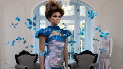 Ni a primera vista parece un vestido normal. El tejido está hecho de fibras metalizadas, la cola está decorada con flores azules y 50 mariposas ocupan el escote y los hombros. Pero lo más especial está por llegar. La modelo levanta suavemente el brazo y las decenas de mariposas de papel salen volando a su alrededor. Luego caen, la tecnología todavía no ha solucionado la vuelta al punto de partida. Con esta puesta en escena, Intel ha presentado este jueves en Madrid su nuevo vestido inteligente, al que ha llamado Butterfly Dress. La clave está en un chip Intel Edison, en las fibras ópticas y en los sensores de proximidad que permiten a la prenda reaccionar ante el entorno. Así, las mariposas salen volando en el momento en el que sensor detecta un objeto a menos de 30 centímetros de distancia del vestido o cuando lo activa un dispositivo móvil conectado a la prenda.