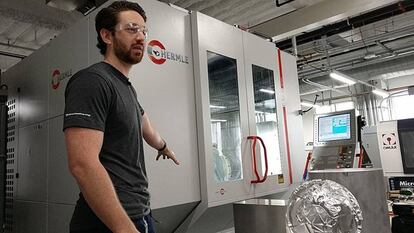 Burns, encargado de ir activando diferentes máquinas de impresión en tres dimensiones o fresadoras de última generación capaces de generar metales ligeros y resistente con formas complejas, cree que este método de trabajo les permite innovar con mayor rapidez. “Al estar todos juntos, charlamos, hablamos, comentamos y compartimos qué ha ido bien y qué no. Es un entorno tranquilo pero también especializado. Nunca había tenido acceso a tanto material”, presume.