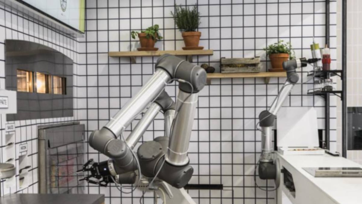 A pesar del fracaso de Flippy, el robot capaz de hacer 300 hamburguesas en una hora en Pasadena (California) y que tuvo que ser inhabilitado un día después por no ser capaz de responder a la demanda, los restaurantes de comida rápida siguen buscando la fórmula del local automatizado. La empresa francesa Ekim ha presentado su primera pizzería cuyo cocinero son tres brazos robotizados capaces de elaborar 120 pizzas a la hora, tres veces más rápido que una persona.
