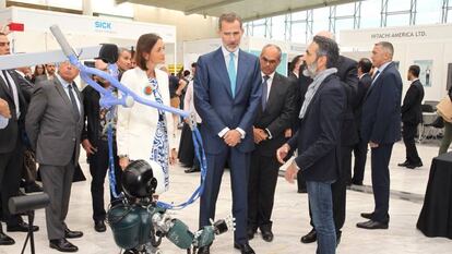 Robinion es el robot ganador del torneo. Tiene seis años, mide 85 centímetros y pesa siete kilos y medio. Su ojo —que es una cámara frontal—, su sonrisa y su pajarita de rayas amarillas y negras cautivan al público desde el momento en el que empieza el espectáculo. “Buenos días a todos. Mirad lo que pasa si usas las mismas piezas durante seis años. Ahora las articulaciones de mis hombros y de mis rodillas crujen”, afirma en inglés con una voz robótica mientras flexiona sus piernas.