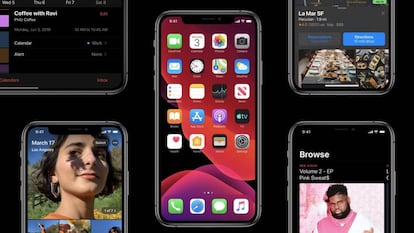 El principal añadido es la inclusión de un nuevo modo oscuro a nivel de sistema, que cambia la paleta de colores de todas las interfaces del sistema operativo y las aplicaciones de la marca. Adquiere especial sentido en los últimos modelos iPhone, que cuentan con pantallas OLED, capaces de apagar los píxeles de forma individual para mostrar un color negro puro.