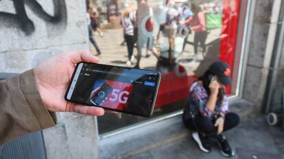 Madrid es una de las 15 ciudades españolas escogidas por Vodafone para lanzar este sábado su primer servicio comercial de conexión ultrarrápida, el 5G. Entre turistas fotografiándose junto a la estatua del oso y el madroño y personas disfrazadas de Mario Bros, Chucky o Bart Simpson intentando llamar su atención, EL PAÍS ha comprobado en plena Puerta del Sol qué posibilidades se abren con esta nueva tecnología. Las pruebas se han realizado con el Xiaomi Mi MIX 3 5G y el LG V50 ThinQ5G. Estos terminales son, junto al Samsung Galaxy S10 5G, los tres smartphones compatibles con la nueva red de la operadora.