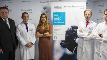 Otra de esas aplicaciones se mostró este jueves en la capital de la Costa del Sol. El doctor Pedro Rosón, jefe del Servicio de Aparato Digestivo del hospital Quirónsalud en Málaga, practicó una endoscopia a una paciente de un tumor premaligno en el colon mientras uno de los mayores especialistas en ese campo, el japonés Katsumi Yamamoto, le apoyaba desde el salón de su casa en Osaka (Japón).
