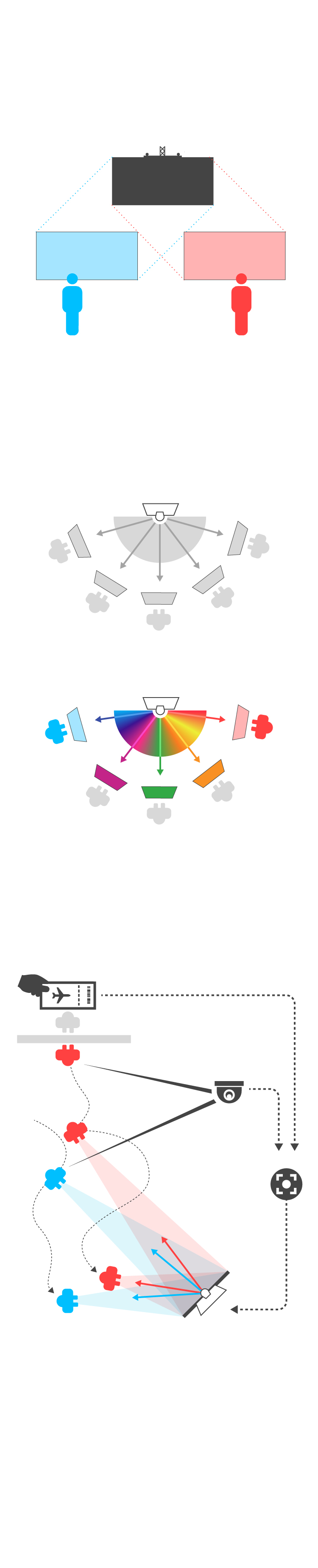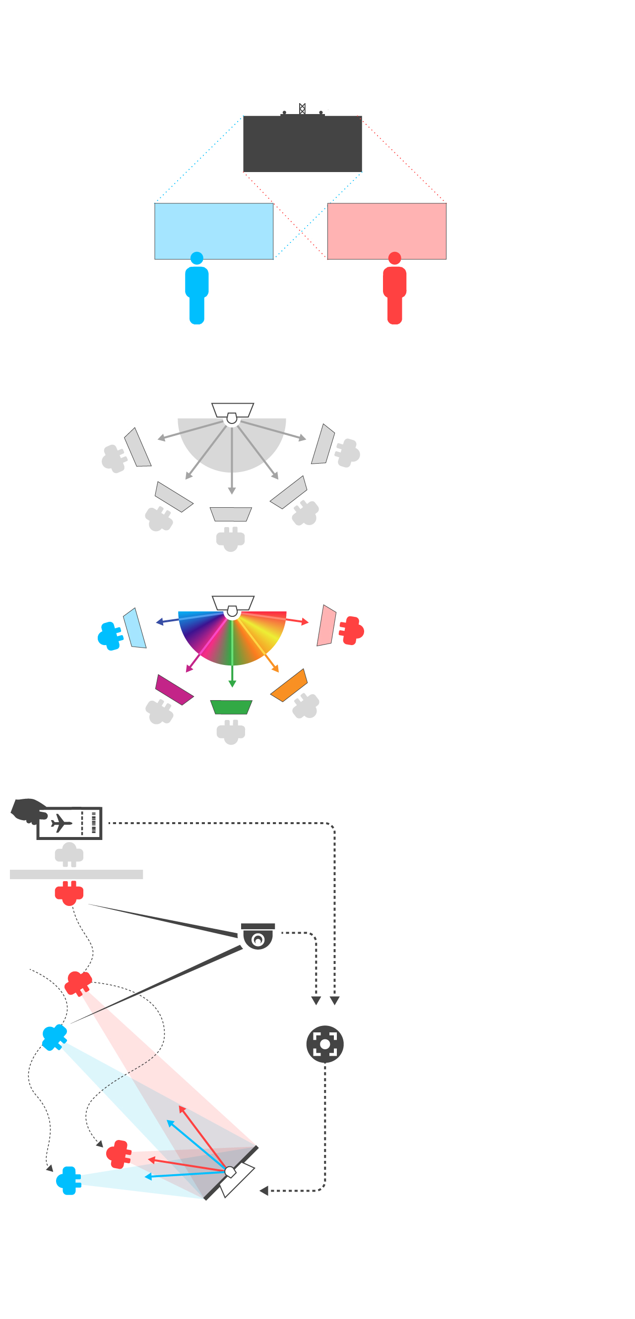 Lo más importante de la realidad paralela, según sostiene, es la posibilidad de controlar a dónde va cada rayo de luz. Al escanear la tarjeta de embarque, el sistema analiza el tipo de información que le tiene que mostrar a cada viajero en lugar de enseñarle la de decenas de vuelos. En la demo realizada en el CES, celebrado en Las Vegas entre el 7 y el 10 de enero, una cámara detecta a cada persona como si fuera un objeto. De esta forma, les muestra siempre la información pertinente aunque se muevan por la sala. El sistema, según sus creadores, puede funcionar con más de 100 pasajeros a la vez y no utiliza reconocimiento facial.