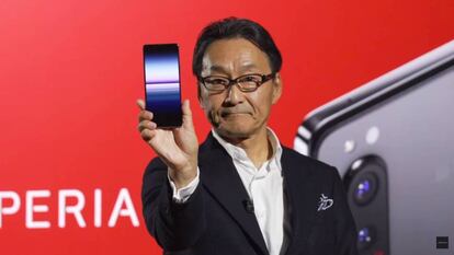 Mitsuya Kishida, presidente de Sony Mobile Communications, muestra el Sony Xperia 1 II. En vídeo, anuncio del móvil.Vídeo: Sony Xperia