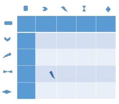 Así pues, su plan era rellenar la tabla usando primero las figuras que indicaban las tablillas correspondientes a las tribus aliadas, para luego seguir añadiendo símbolos de alguna forma, hasta solo dejar una casilla sin figura. Dos eran, pues, las cuestiones a resolver: