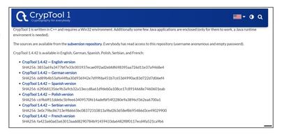 De este modo, un usuario que se baja, por ejemplo, el programa Cryptool 1.4.42 en Español, debería comprobar (ejecutando SHA256 en su ordenador) que el resumen del código obtenido coincide con la cadena de bits que aparece en la página (escrita en hexadecimal):