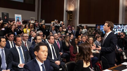 A la sesión del Comité Judicial del Senado estaban citados Mark Zuckerberg, consejero delegado de Meta, la compañía matriz de Facebook; Linda Yaccarino, de X; Shou Zi Chew, de TikTok; Jason Citron, de Discord, y Evan Spiegel, de Snap. Tras ellos, el público más hostil posible: padres de niños víctimas de abusos en redes que se acabaron suicidando por el acoso recibido en esas plataformas.