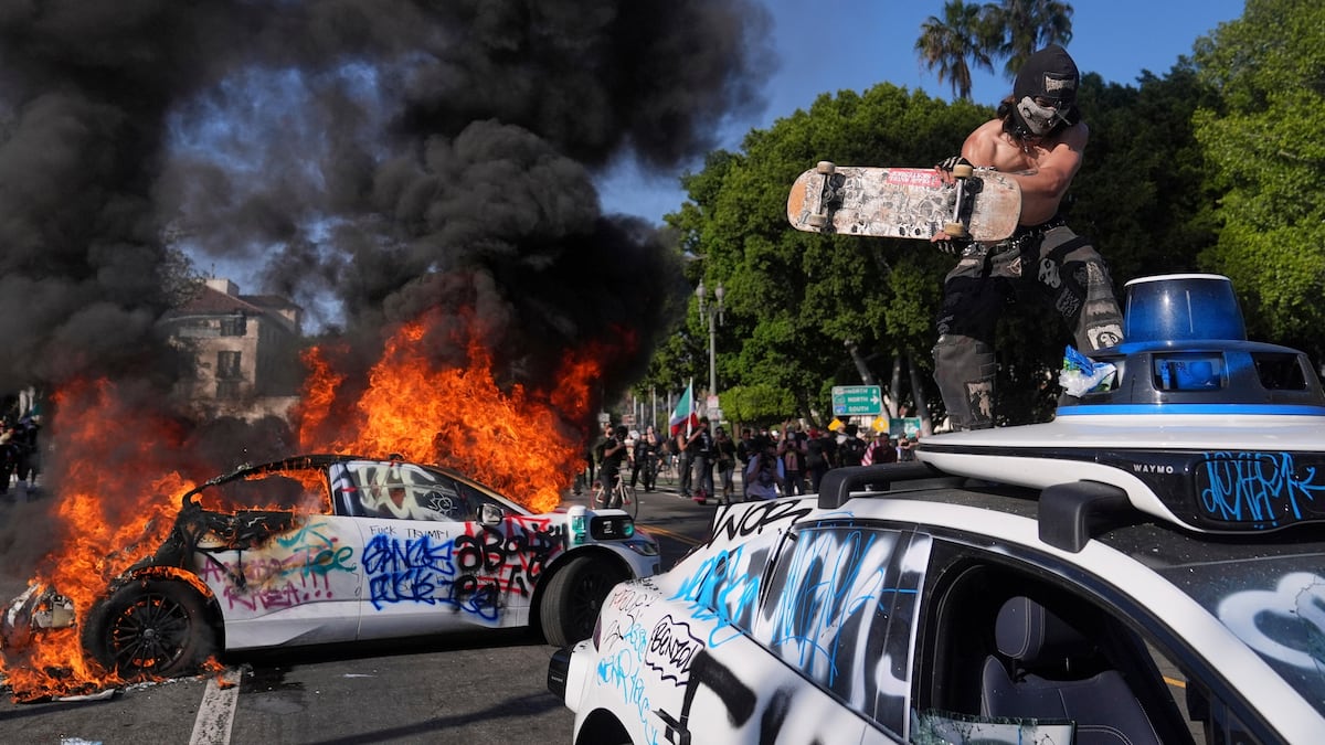 “Waymo insiste en que las protestas no están relacionadas con su servicio, pero parece claro que los robotaxis representan un cambio con el que mucha gente no está contenta”, escriben en el medio especializado The Verge. Esos coches ya han generado muchos problemas desde que se desplegaron por la ciudad hace solo 7 meses, pero hay un factor decisivo aquí: las cámaras. Las necesitan para orientarse sin conductor, pero terminan grabando su entorno circundante y almacenando las imágenes. Y se sabe que la compañía comparte esas imágenes con las autoridades, incluido el Departamento de Policía de Los Ángeles. En esta guerra, los aparatos con cámaras son colaboracionistas. Los periodistas presentes en los disturbios cuentan que se los menciona como “coches espía”. “Cuando ayer pregunté a algunos manifestantes en el terreno por qué pensaban que se incendiaban los Waymos, me dijeron que los autos ‘espían’ a la gente y podrían estar grabando imágenes de las protestas. Todavía no sabemos exactamente quién prendió fuego a los coches o por qué, pero está claro que más gente percibe los Waymos como una extensión de la infraestructura de vigilancia policial”, explica la periodista especializada Taylor Lorenz.