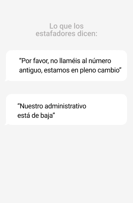 Verificar por un canal alternativo al correo electrónico la petición del proveedor. Por ejemplo, a través del número telefónico habitual de la empresa