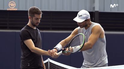 De entrada, el deportista jugaba en casa y no en el barrizal del Teatro Arlequín. La grabación del programa tuvo lugar en su academia de Manacor y comenzó con un intercambio de bolas en el que Nadal jugueteó con su rival. “Hoy estoy aprendiendo mucho. Estoy viendo golpes que no había visto nunca… Tu derecha es de laboratorio, no es natural”, le dice con sorna a Broncano, que pone todo su esmero en cada maniobra y no luce un mal revés, pero que termina jadeando y, claro, perdiendo.