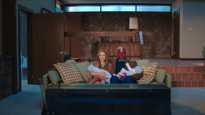 He aquí el punto de partida, sujeto a hondos volantazos, de la serie Bruja Escarlata y Visión (Wandavision en su versión original), de Disney +. Convertida en el primer clásico de culto catódico de Marvel, la ficción, obra de la temeraria Jac Schaeffer –guionista de otros productos del mundo cinematográfico de Marvel, como La Viuda Negra y Capitana Marvel–, se despide este viernes con el estreno de su noveno episodio, habiendo dejado claro de qué forma otro mundo de los superhéroes es posible. ¿Recuerdan el delirio cómico naíf de las películas de Batman de Tim Burton? ¿El absurdo camp de Joel Schumacher en Batman y Robin? Súmenle el espíritu de un What if (Y si... ) de autor y buenas dosis de metanarrativa inteligentísima y se acercarán al resultado.