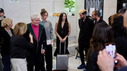 Este lunes, la visita de Rosalía al plató de La revuelta volvió a revolucionar el centro de Madrid. Antes de la entrevista, el programa de TVE recreó una junta de vecinos urgente muy especial para recibir a la artista, compuesta por 10 rostros famosos, además de contar con el presentador David Broncano y con el colaborador Jorge Ponce. Entre los supuestos inquilinos se encontraban la futbolista Alexia Putellas, la actriz Carmen Machi, los integrantes del grupo Estopa, el actor y director Javi Calvo, el culturista Joan Pradells, la cantante La Zowi, la exalcaldesa de Madrid Manuela Carmena, la diseñadora María Escoté y el director de cine Pedro Almodóvar.