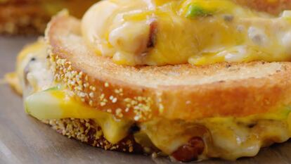 Lleva el clásico sándwich de queso a un nuevo nivel con esta receta llena de sabor y creatividad. Con cuatro rebanadas de pan, mayonesa picante, queso Monterrey Jack, cebolla crujiente, chiles Hatch y aguacate, este emparedado ofrece una combinación perfecta de texturas crujientes y toques picantes que cautivarán a todos. Ideal para una comida rápida pero especial.