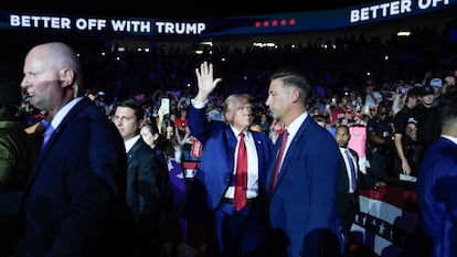 Es una vieja estrategia del equipo del expresidente republicano. No empezó cuando hace unos días invitó a los reguetoneros puertorriqueños Anuel AA y Justin Quiles a agarrar el micrófono de su mitin en Pensilvania para aplaudirlo y apoyarlo públicamente. Tampoco cuando invitó a Nicky Jam a subir al escenario de Las Vegas. En 2020, una canción del grupo musical cubano Los 3 de La Habana comenzó a ser parte de su campaña cuando peleaba la presidencia junto a Joe Biden. El tema, que decía “ay, por Dios, yo voy a votar por Donald Trump” o “Hazlo por tus familias, ¡latinos por Donald Trump!”, resonó en Florida, donde el discurso anticomunista de Donald Trump acaricia con complacencia el oído de gran parte de la comunidad cubana, que no duda en darle su voto.