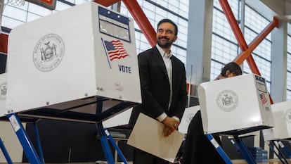 El candidato demócrata Zohran Mamdani emite su voto en las elecciones a la alcaldía de Nueva York
