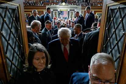 Por momentos, Donald Trump se ha parecido a Jacopo Comín, el famoso artista veneciano que a finales del siglo XVI pintó El Paraíso, firmado con su seudónimo Tintoretto. Para el presidente, la economía estadounidense parece un paraíso como nunca lo fue. “La edad dorada de América”, pronunció durante su discurso sobre el estado de la Unión. Un discurso triunfalista sin rastro de sombras en la primera potencia mundial, pese a que en 2025 creó empleo al ritmo más bajo en un año que no estuviera en recesión, pese a que el lánguido crecimiento económico del último trimestre ha hecho saltar algunas alarmas, pese al aumento de la desigualdad con un crecimiento en forma de K, pese a que el dólar se deprecia, pese a los riesgos de burbuja en la IA, pese a tener una deuda y un déficit público desbocados y pese a muchas otras nubes que empañan un horizonte que, a pesar de todo, no anticipa tormenta.