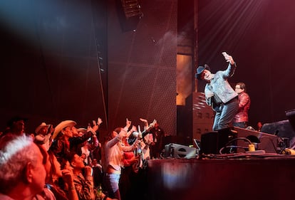 Eso no quiere decir que sus recitales carezcan de tinte político, o por lo menos es inevitable verlo así en el contexto actual. Este sábado, justo antes de que Pulido saliera al escenario, se proyectaba la primera secuencia del video de su canción Algún Día, de 2010. En una obra de construcción, Pulido presume de que gracias a su novia ya tiene “papeles”. A lo que un compañero le responde: “Sí, wey, pero como está la ley hoy en día, ¿sabes qué?, si pareces mexicano, te van a parar nomás para investigarte”. Entonces, Pulido se sube a unos pallets que hacen de tarima para lanzar una enérgica defensa del sueño americano, como si ya fuera un político. En ese momento, el cantante sale a escena con sus botas de vaquero y comienza a cantar en vivo ante cinco mil fanáticos a los que les da igual su ambición política.