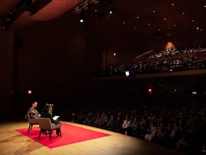 “Sí, pues eso es muy emocionante”, dice en una entrevista íntima con EL PAÍS tras la charla. “Toda la plática se trató un poquito de lenguaje humano y cómo es importante para conectar, para identificarnos, para expresarnos, para transmitir nuestra herencia”. La elección del idioma no fue casual. “Para mí ha sido complicado, hablando en inglés, poder transmitir las emociones que tienen que ver con este punto. Entonces, por primera vez, como que siento que puedo conectar de manera más directa con una audiencia”.