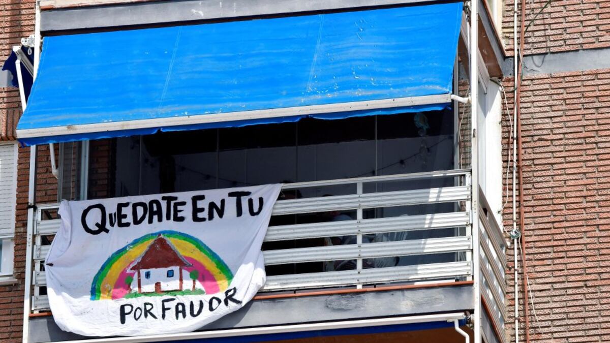 Balcón de una vivienda en una calle de Almería este domingo, durante el Estado de Alarma decretado por el coronavirus. En vídeo, guía para hacer frente al confinamiento.Foto: EFE | EPV