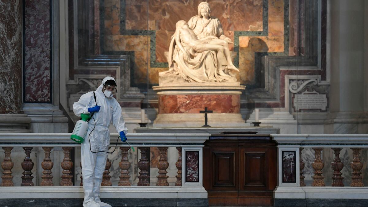 La Basílica de San Pedro del Vaticano reanudará este lunes sus misas públicas después de haber sometido desde este pasado jueves a un exhaustivo proceso de sanitización. Rodeados por imponentes obras de arte como La Piedad de Miguel Ángel o el baldaquino de bronce de Bernini, un grupo de técnicos, completamente cubiertos con monos herméticos, se ha ocupado de desinfectar la basílica.
