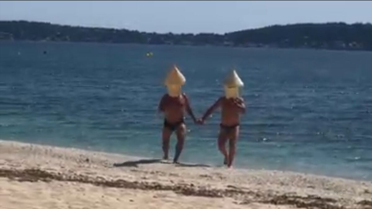 La policía multó el pasado 8 de mayo a dos hombres que se habían disfrazado de boyas para poder bañarse en una playa de Hyéres, una localidad cercana a Marsella. Entonces, el baño estaba completamente prohibido en el país galo por las medidas impuestas para frenar el coronavirus. Un ciudadano grabó y subió a su Facebook esta cómica escena, que ya ha superado las 500.000 reproducciones. En el vídeo se puede ver a los dos hombres cuando salen del agua con una boya en la cabeza, con la que pretendían poder bañarse en la playa sin ser vistos, y cómo se alarman cuando la policía se percata de lo que están haciendo
