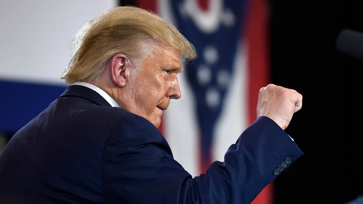 Trump explica en un mitin que parece naranja por las bombillas