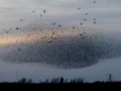 Las aves migratorias formaron una isla sobre un lago durante su viaje migratorio invernal hacia el sur