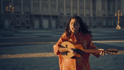 EL PAÍS estrena en exclusiva la actuación de la cantante mexicana Silvana Estrada (Xalapa, 1997) en la Plaza de la Armería del Palacio Real de Madrid, antes de su actuación en la segunda edición del festival Jazz Palacio Real, organizado por Patrimonio Nacional. Estrada interpreta en el vídeo que acompaña esta noticia su canción La corriente, que se incluirá en su próximo álbum, Marchita, y que se encuentra presentando en una gira por España. En la presentación del vídeo, Silvana se muestra agradecida al público español: “Es el lugar más bonito donde voy a haber tocado jamás. Es el momento más importante de mi carrera hasta ahora. Siempre me ha sorprendido la manera tan natural y apasionada con la que reacciona el público español”, declara.