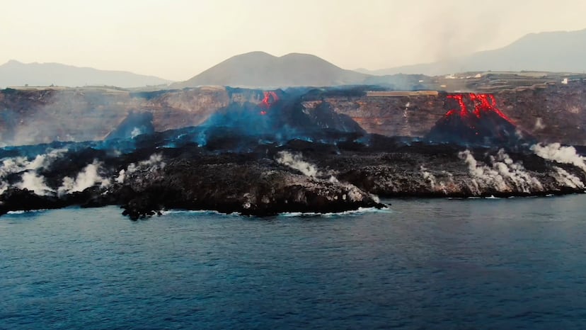 La lava del nuevo volcán de Cumbre Vieja continúa ganando terreno al mar en el delta formado bajo el acantilado de la playa de Los Guirres. En el vídeo que acompaña a esta noticia, grabado en calidad de alta definición, puede seguir el recorrido del magma desde las bocas del volcán hasta el acantilado y apreciar cómo se solidifica al entrar en contacto con el agua. En este descenso, la colada ha arrasado hasta este lunes unas 400 hectáreas de la isla bonita, sobre todo en la vertiente sur. Los científicos del Instituto de Ciencias Marinas de Andalucía, vinculado al CSIC, han utilizado los drones de la plataforma SEADRON con el objetivo de que puedan realizar el seguimiento de la colada de lava derivada del volcán, así como del impacto de la misma sobre el medio marino.