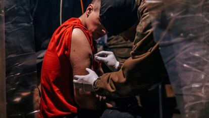 Militares en muletas a los que les falta una pierna, operaciones improvisadas con pocos recursos... Las fotografías de Dmytro Orest, del batallón Azov, muestran el interior de la acería de Azovstal, en Mariupol, el último bastión del ejército ucranio en la ciudad asediada. En la planta metalúrgica tan solo quedan militares, algunos de ellos heridos de gravedad, después de que esta semana se completara la evacuación de los 200 civiles que se refugiaban en los búnkeres del edificio. Los miembros del ejército ucranio que resisten en la siderúrgica han tenido que improvisar un hospital para paliar a los heridos de la guerra.