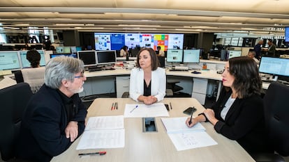 La directora de El País, Pepa Bueno, analiza en compañía de la directora adjunta, Mónica Ceberio, y el periodista Miguel González, los problemas de regular los servicios secretos en España