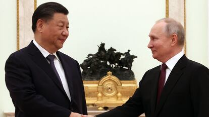 Xi Jinping y Vladímir Putin, este lunes en Moscú.Foto: Sergei KARPUKHIN / SPUTNIK / AFP | Vídeo: DANIEL CASTRESANA
