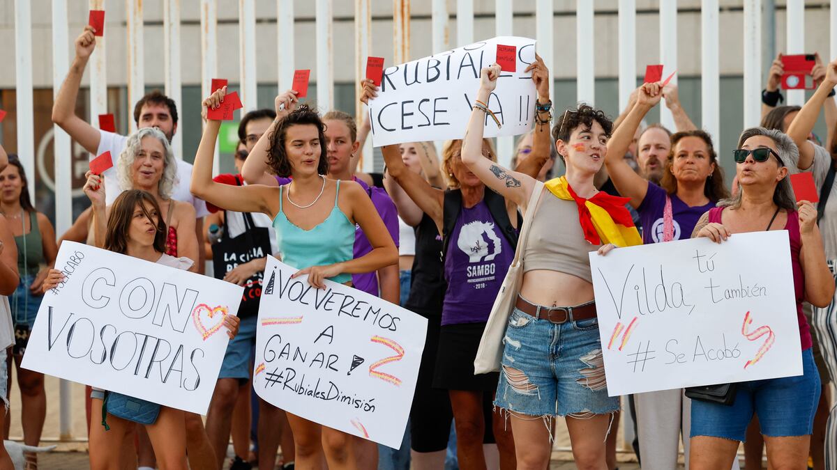Además de las muestras de apoyo de otros deportistas y aficionados a través de las redes sociales, la jugadora del Pachuca mexicano ha sido respaldada por decenas de personas que se han manifestado en contra de las declaraciones Luis Rubiales en diferentes ciudades de España. Con gritos como “sin consentimiento es una agresión”, grupos de personas se han concentrado frente a la Ciudad del Fútbol de Las Rozas, la sede de la Federación Cántabra en Santander o el centro de Logroño para mostrar su rechazo por el comportamiento del presidente de la RFEF y exigir su dimisión como se puede ver en el vídeo que acompaña a esta noticia.