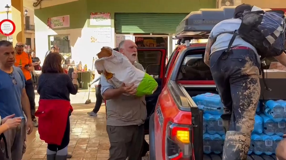 Vídeo | El chef José Andrés reparte comidas a los afectados por la dana