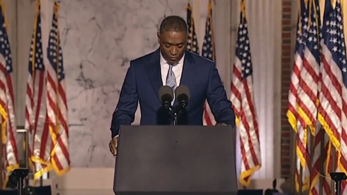 Vídeo | El momento en el que el codirector de campaña anuncia que Kamala Harris no hablará en la noche electoral